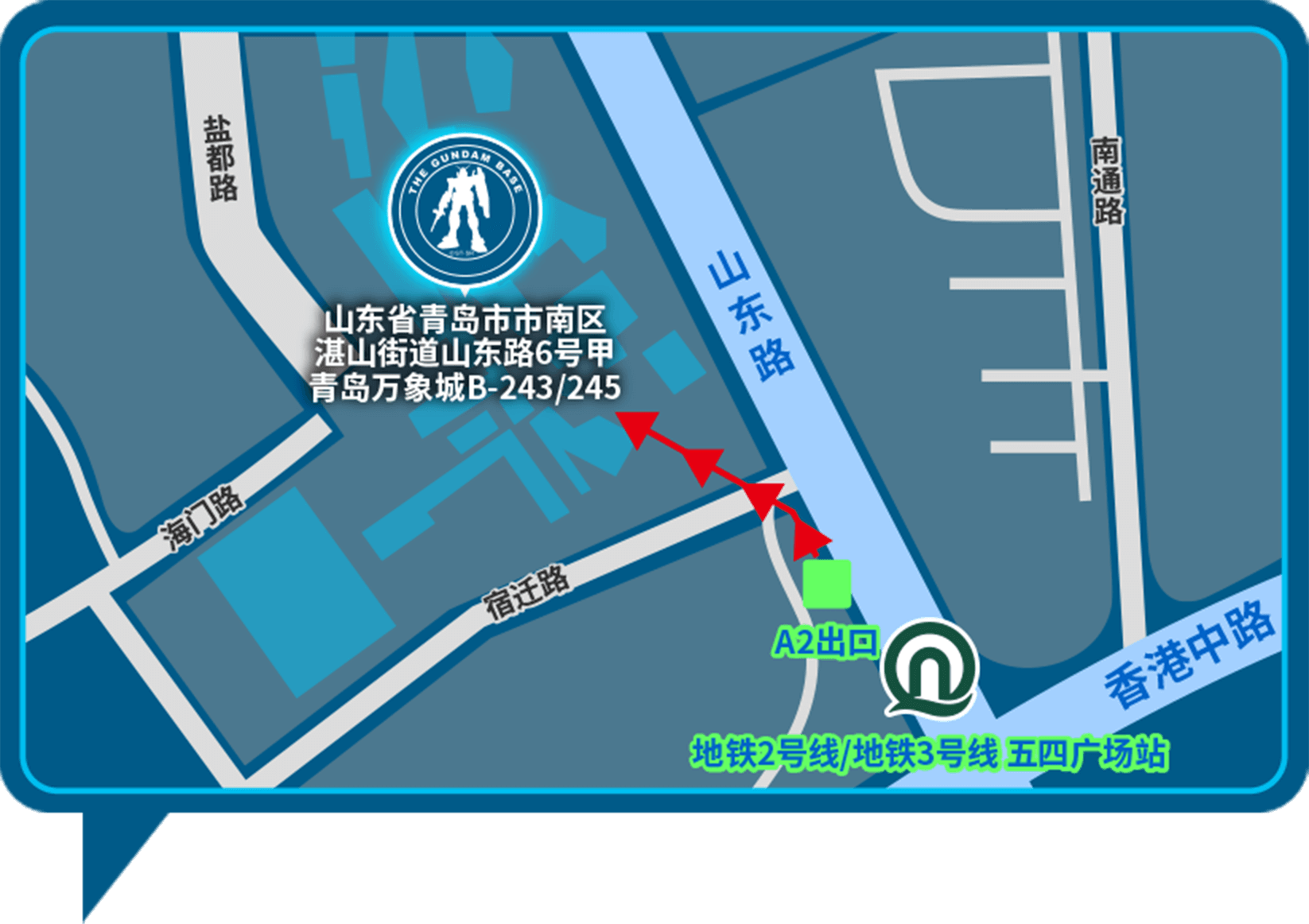 地铁2号线/地铁3号线 五四广场站A2口步行直达