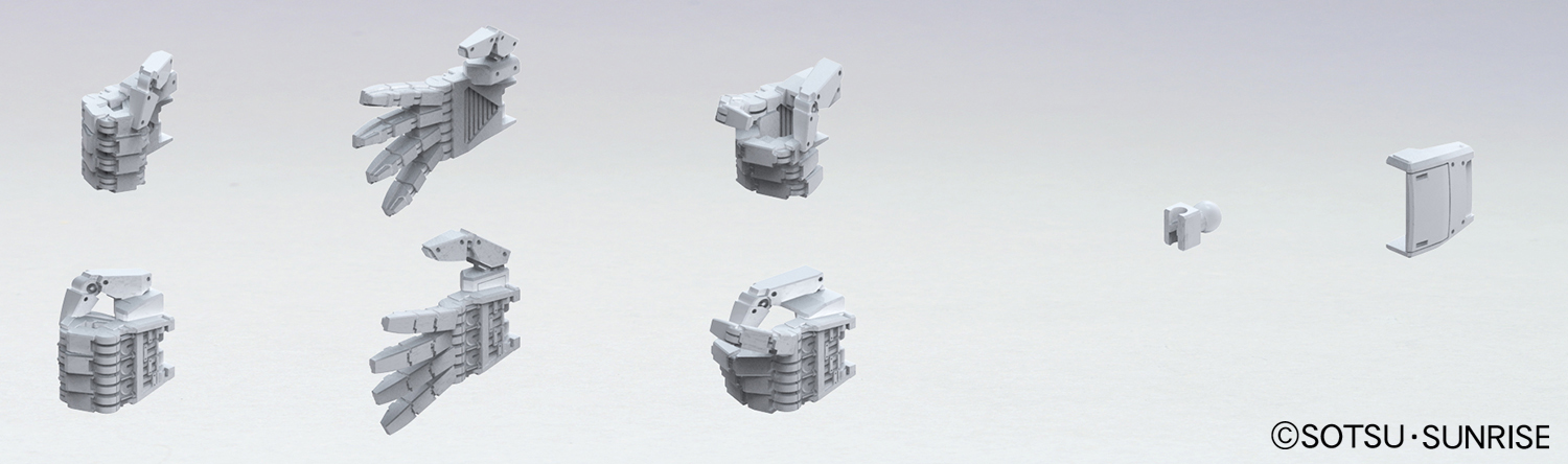 握拳手(左右)×各2、平展手(左右)×各2、握持武器手(左右)×各2、手背外甲零件×12