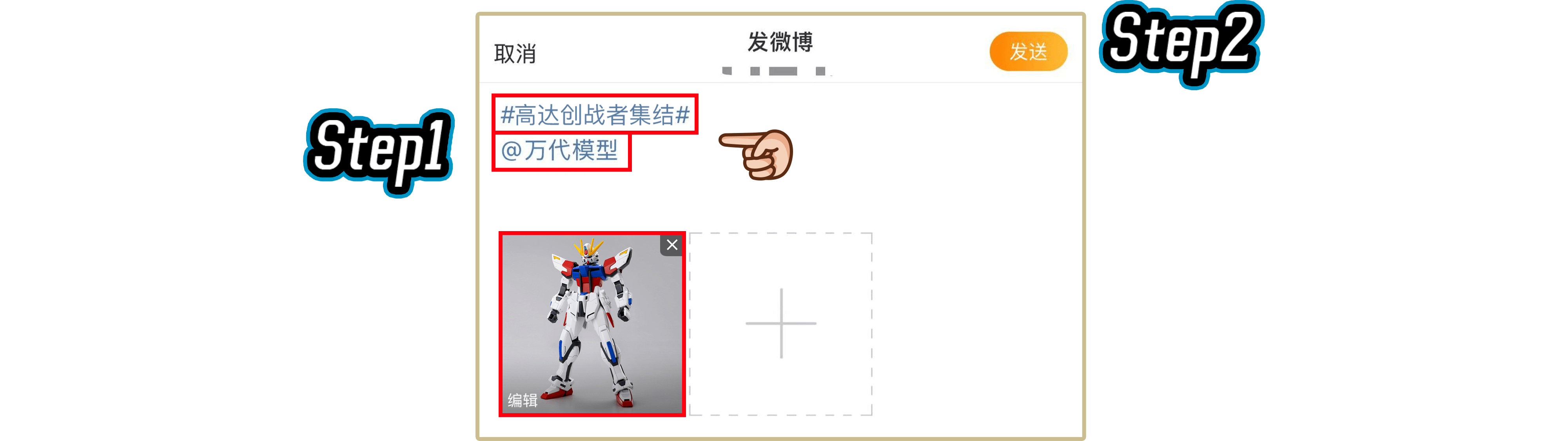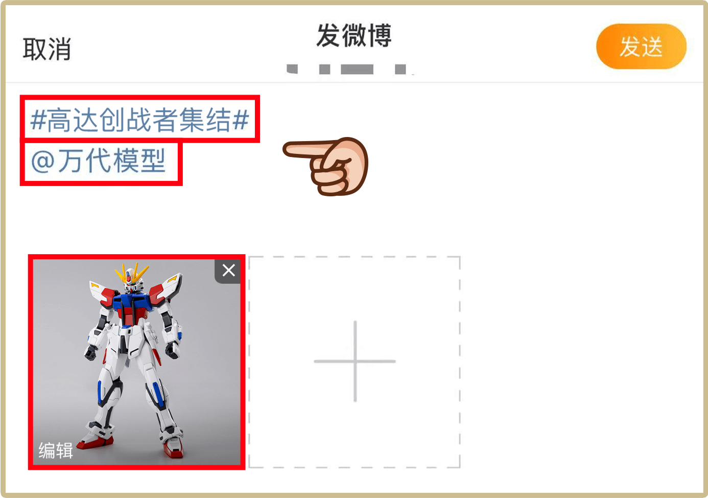 编辑完成发布文案后,添加#高达创战者集结