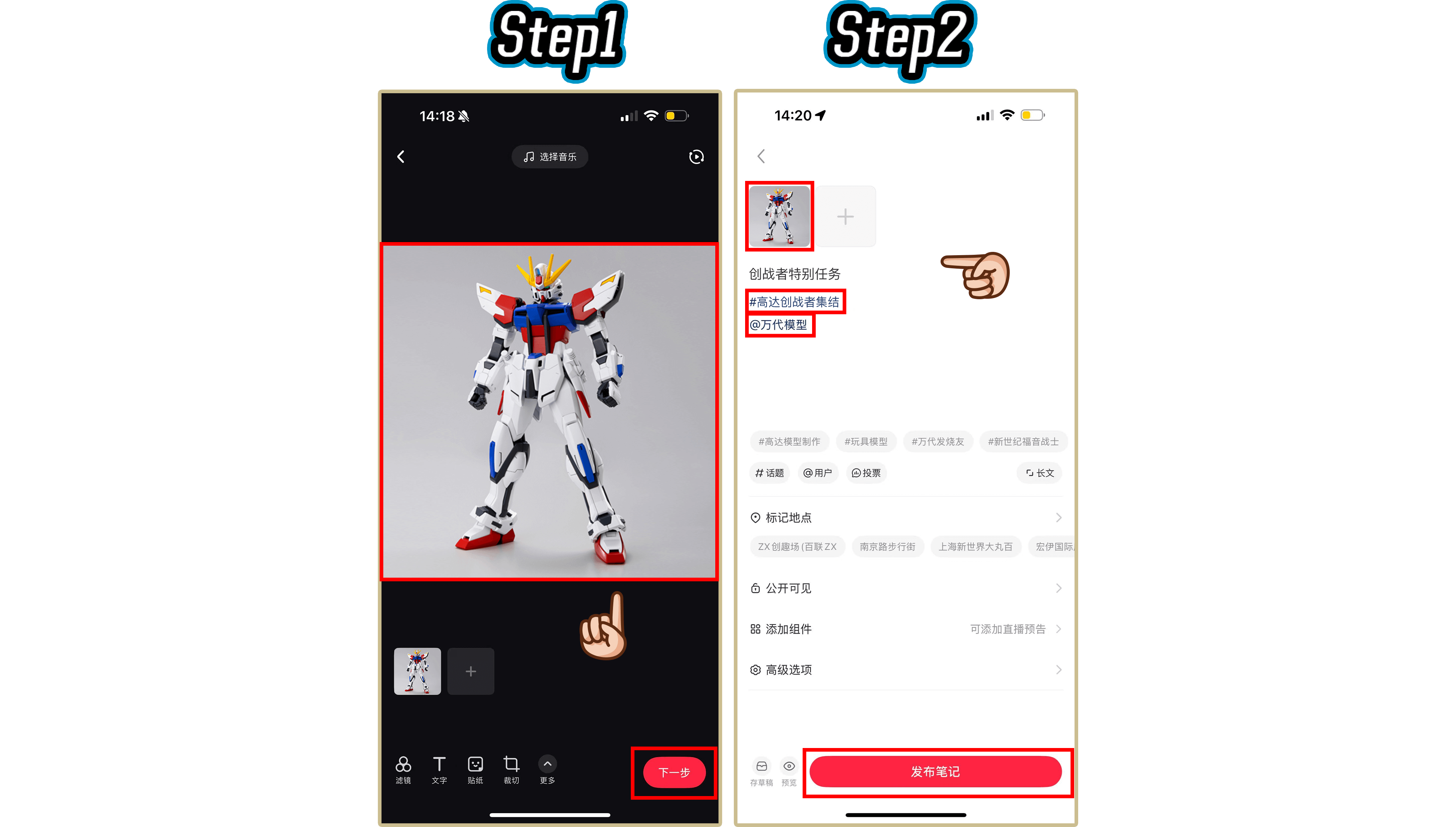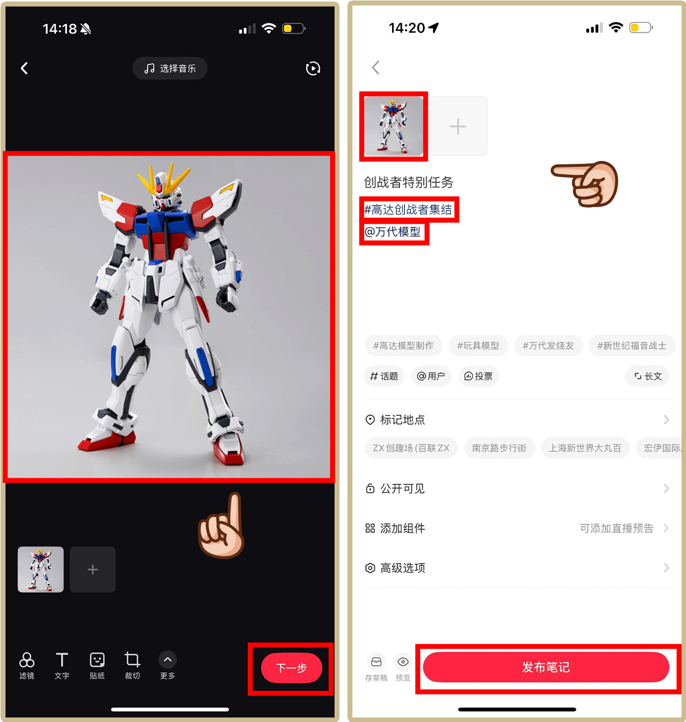 的话题标签,并@万代模型,发布笔记